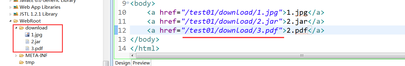 第一种,使用a标签,也就是使用超链接,如果浏览器能够解析,则直接显示出来,如果不能解析,则进行下载,这种方式不太好,