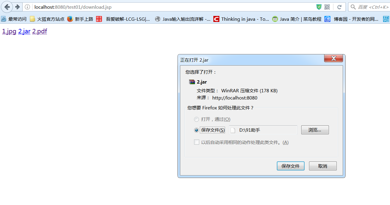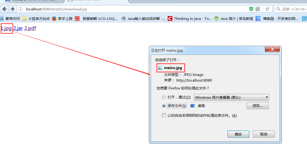 注意:这里下载时写的下载文件名不包含中文,所以能够正常显示,如果写中文的话,则会乱码,甚至是中文都不会显示出来。有两种方式处理这个中文乱码问题