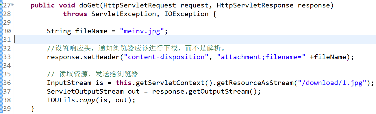 //设置响应头,通知浏览器应该进行下载,而不是解析。