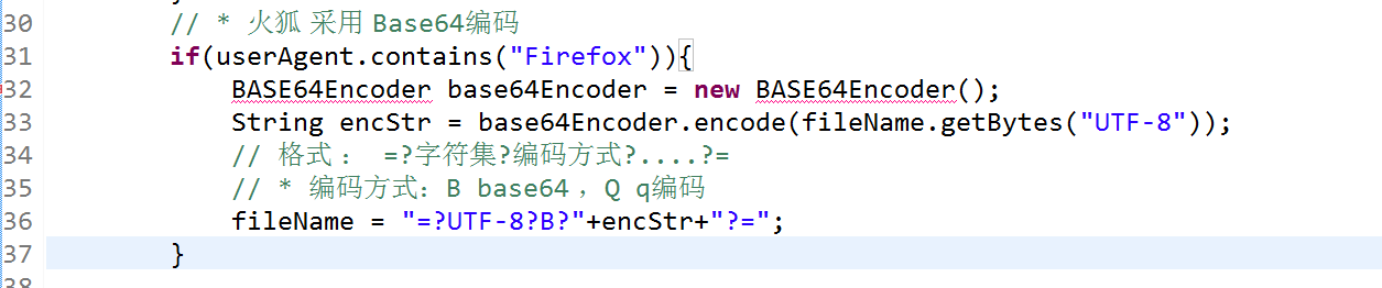 // * IE 谷歌 采用 URL编码,就用URL对fileName进行编码即可。其内部跟我们上面讲解编码解码时的思路类似,可以将fileName输出看看是个什么结果,还是一个xxx.jpg,说明就是将fileName进行编码,解码的过程。