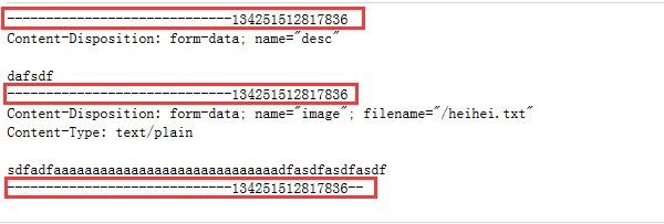 使用multipart/form-data会有一个boundary属性,来用将提交的表单数据进行分隔,以用来让服务器知道哪个是我们上传的资源,哪个是普通的表单数据。