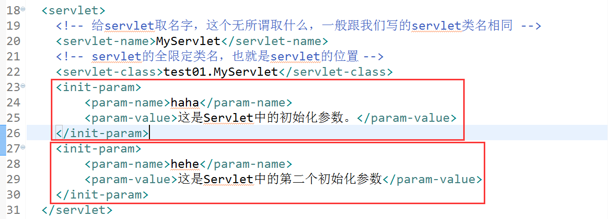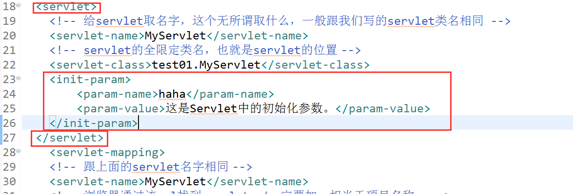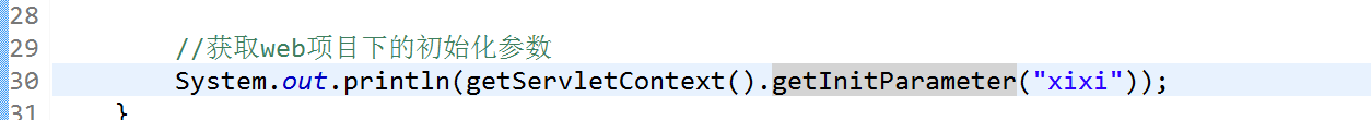 getInitParameter(String); //获取在servlet中初始化参数的值。这里注意与全局初始化参数的区分。这个获取的只是在该servlet下的初始化参数
