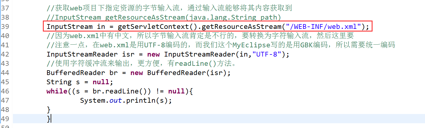 3.2获取web项目下指定资源的内容,返回的是字节输入流。InputStream getResourceAsStream(java.lang.String path)