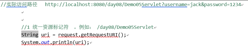 get请求参数:http://localhost:8080/test01/MyServlet?username=jack&password=1234