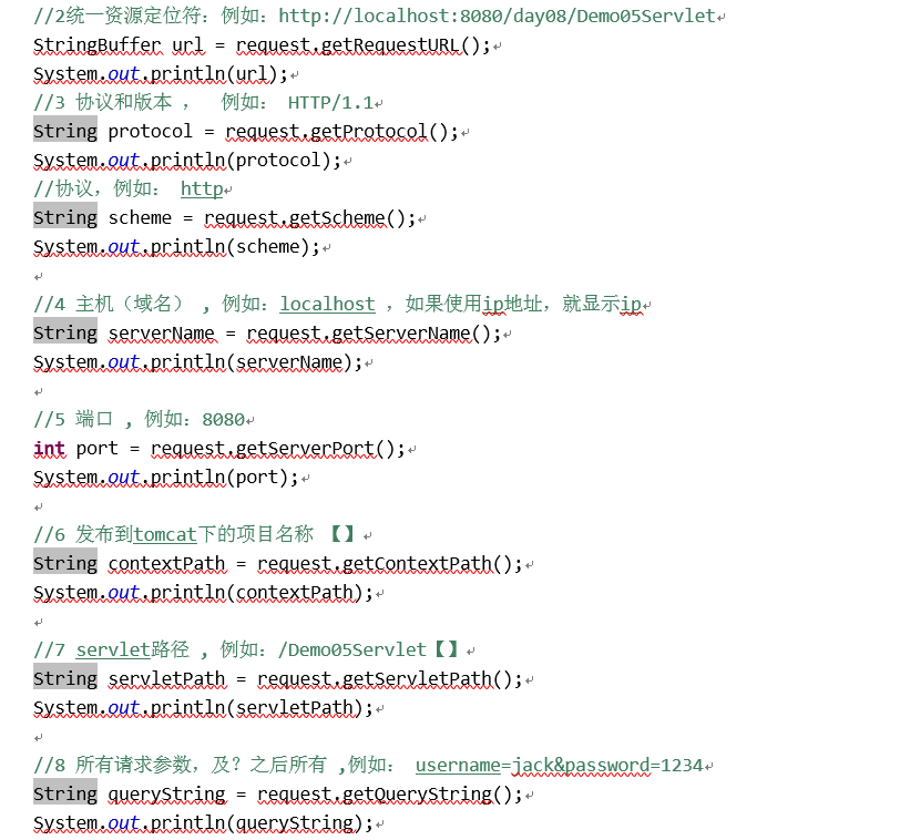 ①:Tomcat将http请求文本接收并解析,然后封装成HttpServletRequest类型的request对象,所有的HTTP头数据读可以通过request对象调用对应的方法查询到。