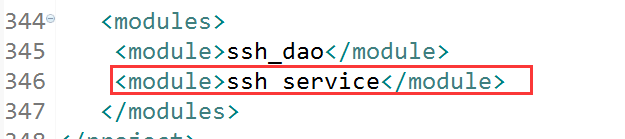 看ssh_service和ssh_parent的pom.xml文件,会出现和ssh_dao创建时一样的情况,ssh_service多出一个parents结点,ssh_parent多个一个module结点