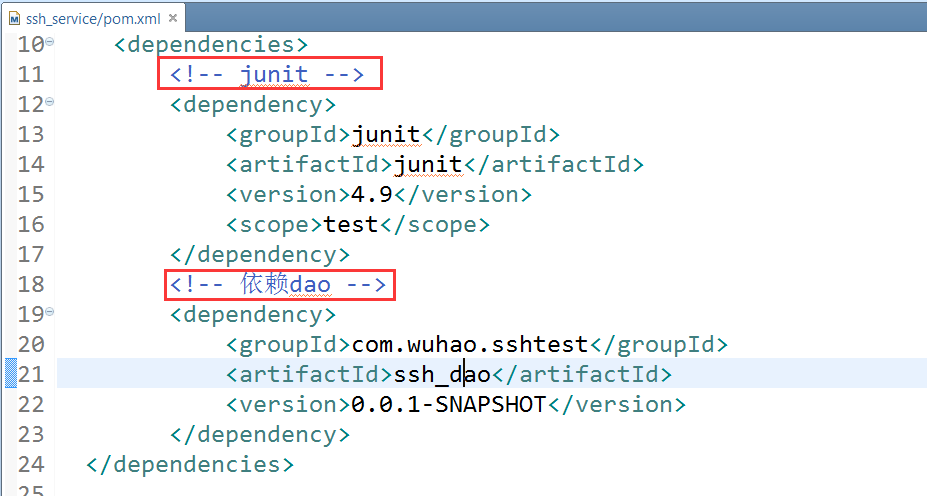 在ssh_service的pom.xml中添加两个依赖
