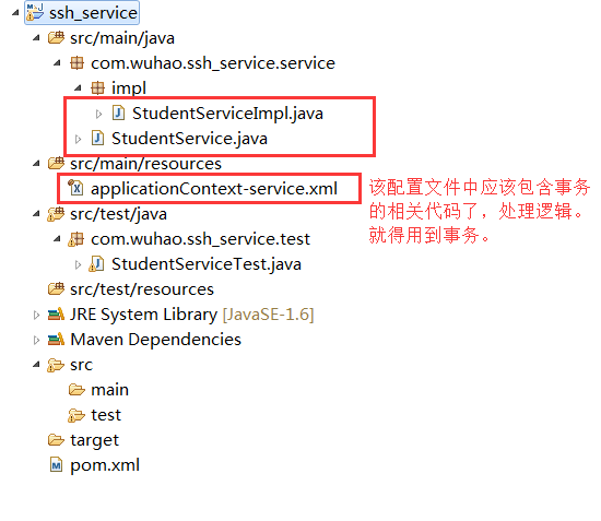 该层的测试,需要将ssh_dao中的applicationContext-dao.xml将ssh_service的applicationContext-service.xml包含进去才能够实验的通。这里不做测试,