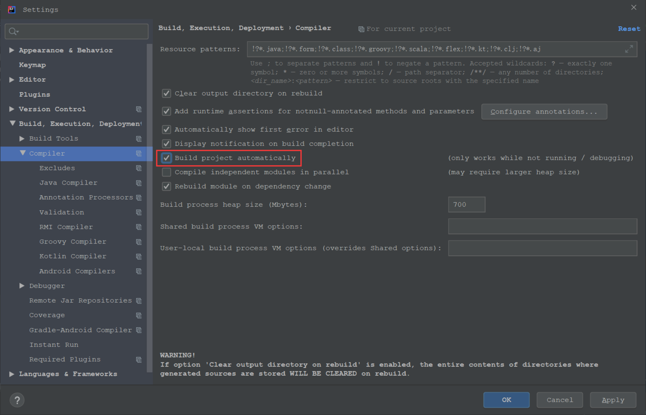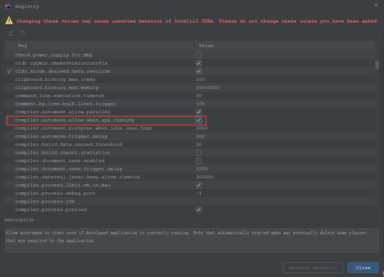 Ctrl + Alt + Shift + /调出 Registry 窗口,勾选compiler.automake.allow.when.app.running选项