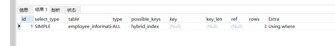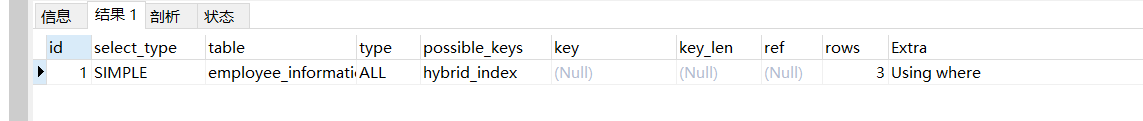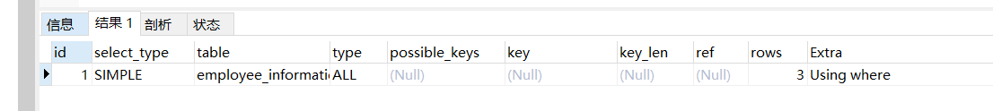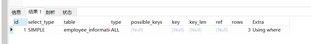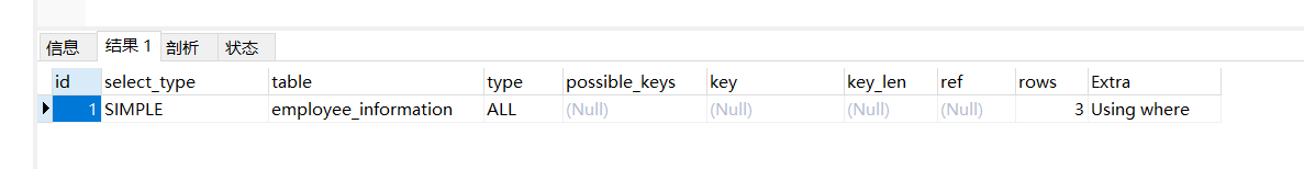 EXPLAIN SELECT * FROM `employee_information` WHERE name != 'budongli'