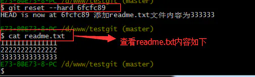 git reset –hard 6fcfc89来恢复了。演示如下: