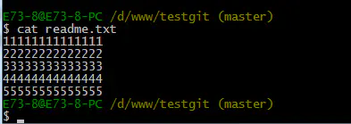 比如我现在在readme.txt文件里面增加一行 内容为555555555555,我们先通过命令查看如下: