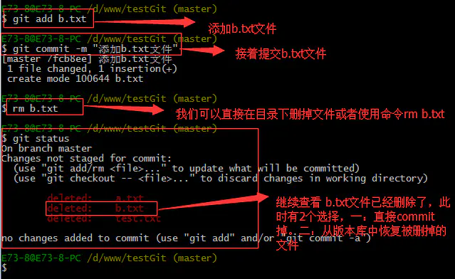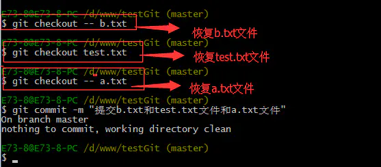 可以使用如下命令 git checkout — b.txt,如下所示: