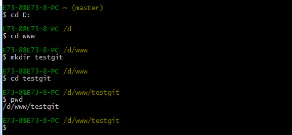 所以创建一个版本库也非常简单,如下我是D盘 –> www下 目录下新建一个testgit版本库。