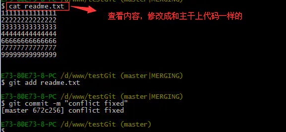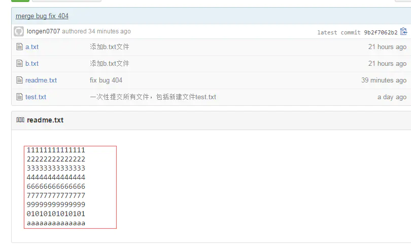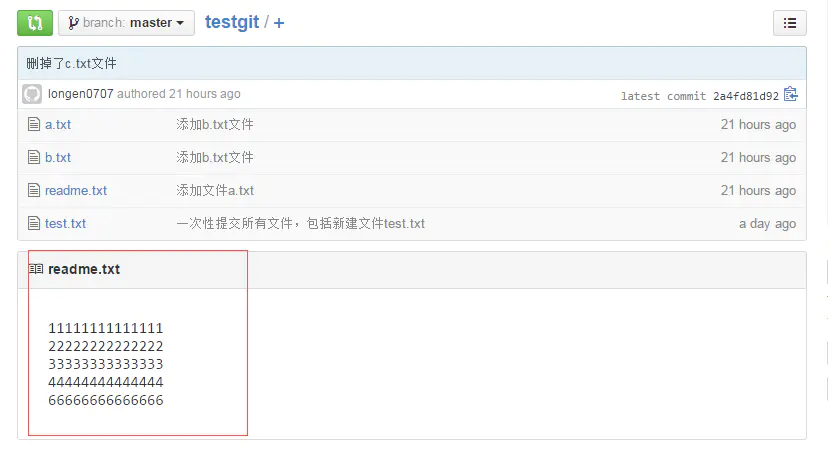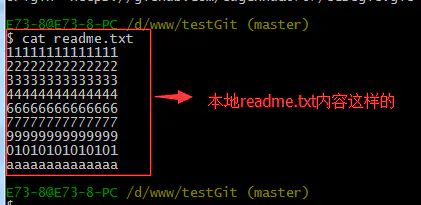 首先我们先来查看下readme.txt内容,接着添加内容77777777,如下: