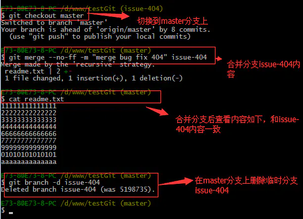 2、 一些修复bug分支不需要推送到远程去,可以先合并到主分支上,然后把主分支master推送到远程去。