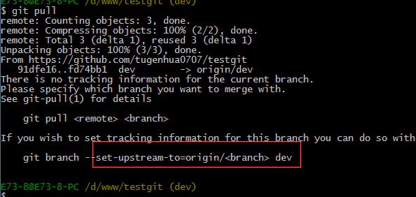 2、 如果推送失败,则因为远程分支比你的本地更新早,需要先用git pull试图合并。