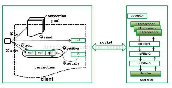 客户端和服务器端维护的是长连接,可以减少每次请求建立连接的开销,在客户端对于每个服务器定义一个连接池,初始化连接后,可以并发连接服务端进行rpc操作,连接池中的长连接需要心跳维护,设置请求超时时间。