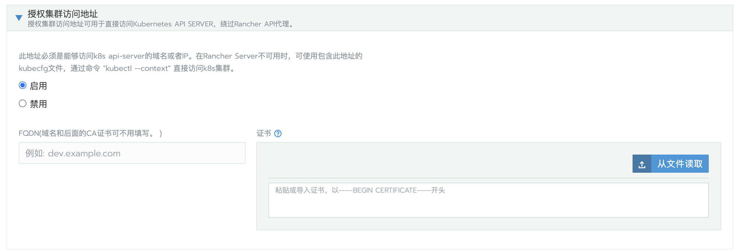 默认情况下,RKE 集群会默认启用授权集群端点。这个端点允许您使用 kubectl CLI 和 kubeconfig 文件访问下游的 Kubernetes 集群,RKE 集群默认启用了该端点。