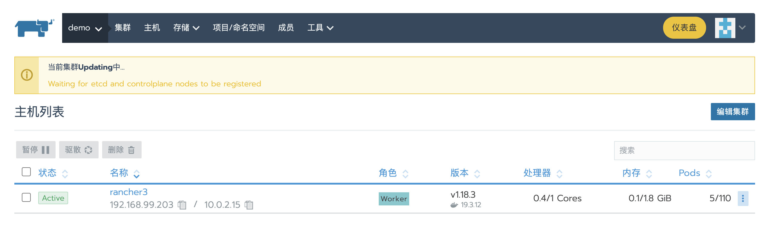 过一会,再回到集群集群主机列表页面,可以看到rancher2节点已经恢复