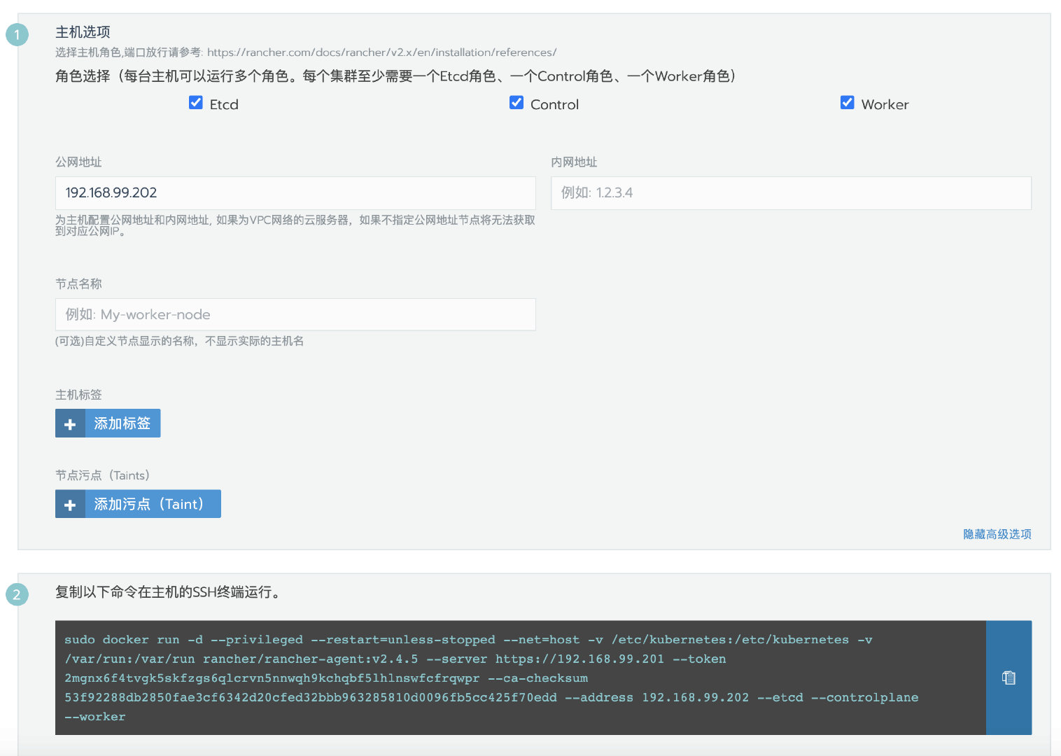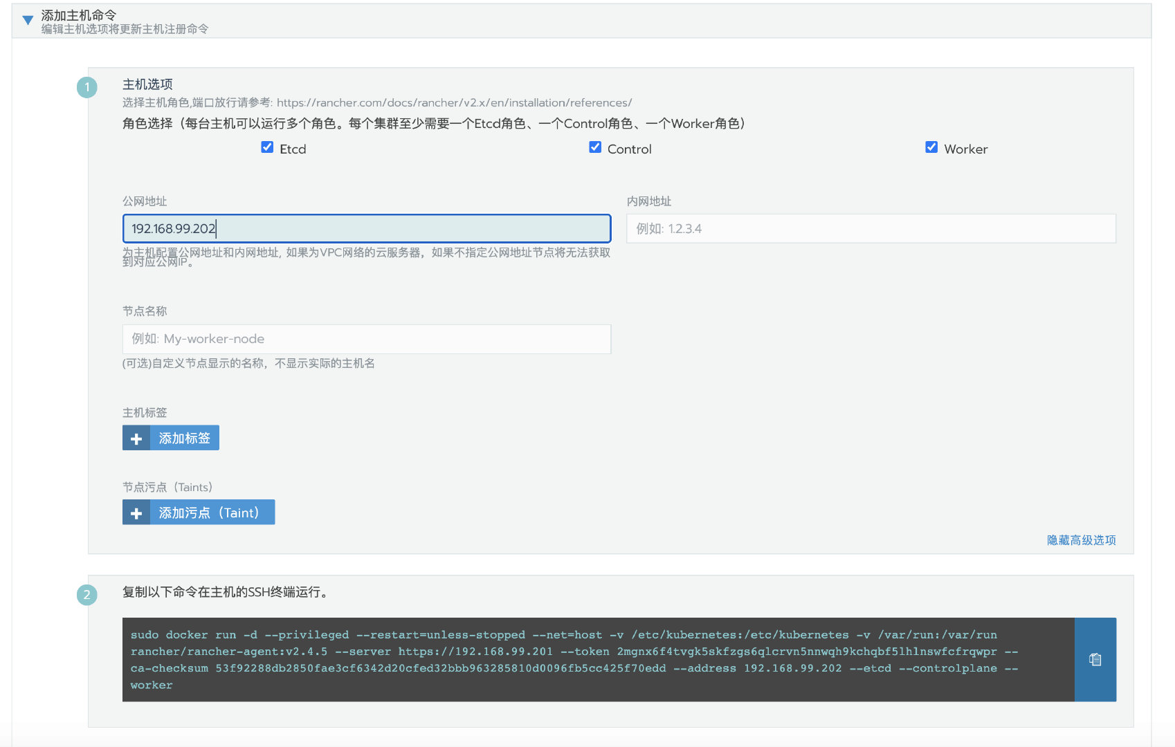 比如我的环境有两个节点,分别具有全部和Worker角色