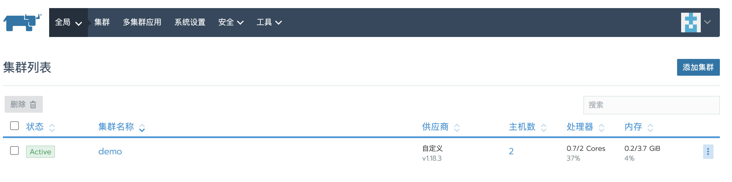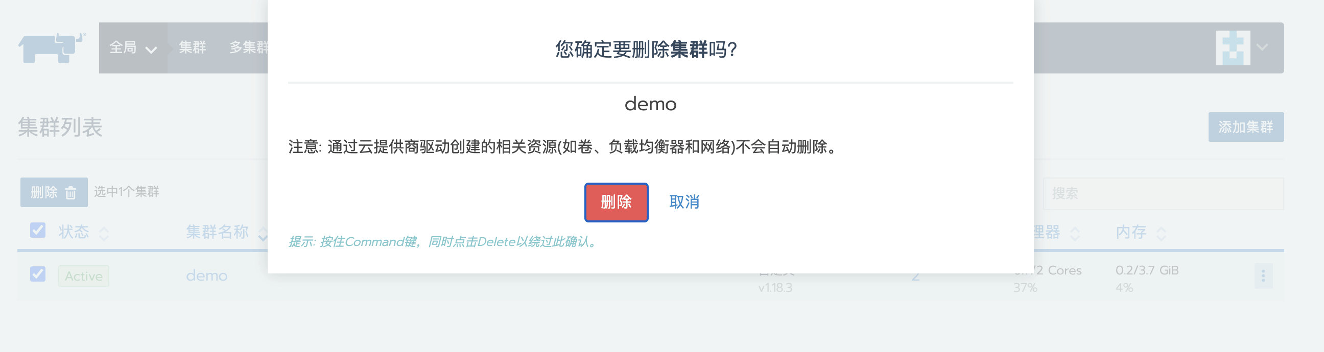 接下来可以在Rancher UI上将集群删除来模拟故障。