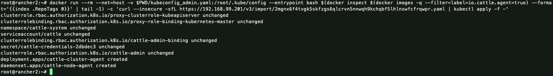 curl --insecure -sfL https://192.168.99.201/v3/import/2mgnx6f4tvgk5skfzgs6qlcrvn5nnwqh9kchqbf5lhlnswfcfrqwpr.yaml | kubectl apply -f -