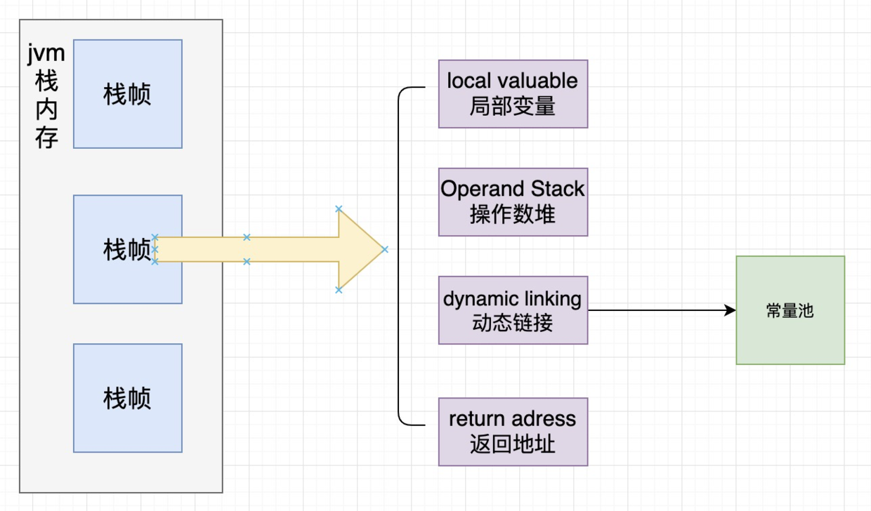 栈帧:A frame is used to store data and partial results, as well as to perform dynamic linking, return values for methods, and dispatch exceptions.