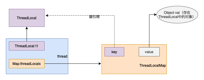 上面的用图画出来就是这个样子,Thread对象中存了一个强引用指向ThreadLocal就是ThreadLocal mThreadLocal = new ThreadLocal<>()句代码,同时Thread中还有个ThreadLocalMap,这个map的key就是指向ThreadLocal对象,这个对象使用的是弱引用,使用弱引用的原因是防止内存泄漏。既然这里使用的是弱引用为啥ThreadLocal还那么容易产生内存泄漏呢?我们看key是弱引用,但是value不是,所以这个记录还是在map中,所以容易产生内存泄漏,为了防止内存泄漏,我们就在ThreadLocal使用完就remove掉。