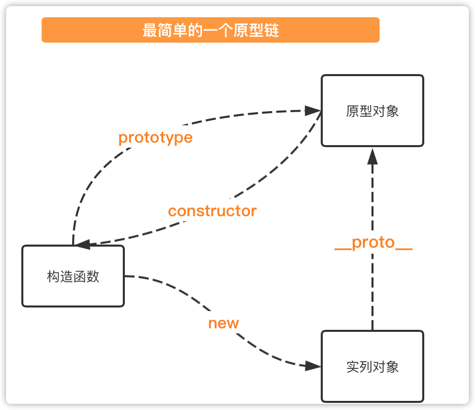 要理解原型链,绕不开constructor、prototype、__proto__这几个核心的知识点,它们的关系如下: