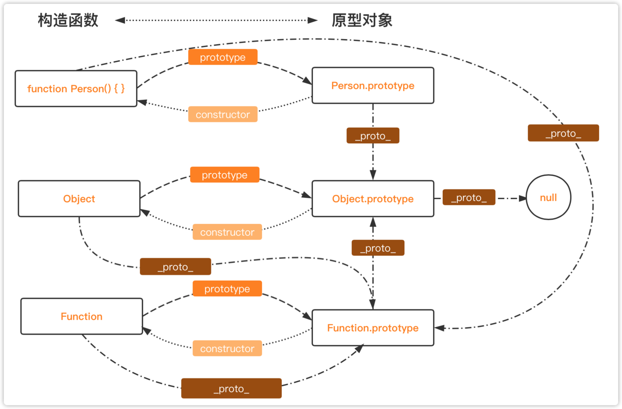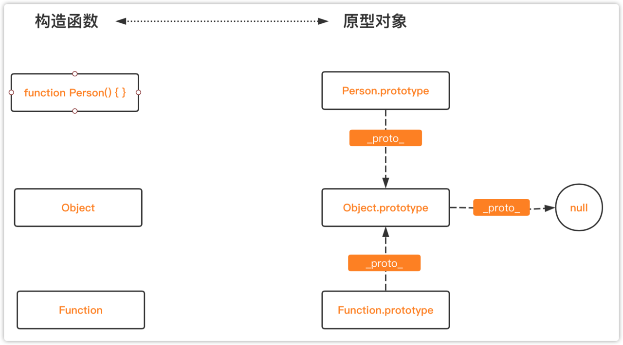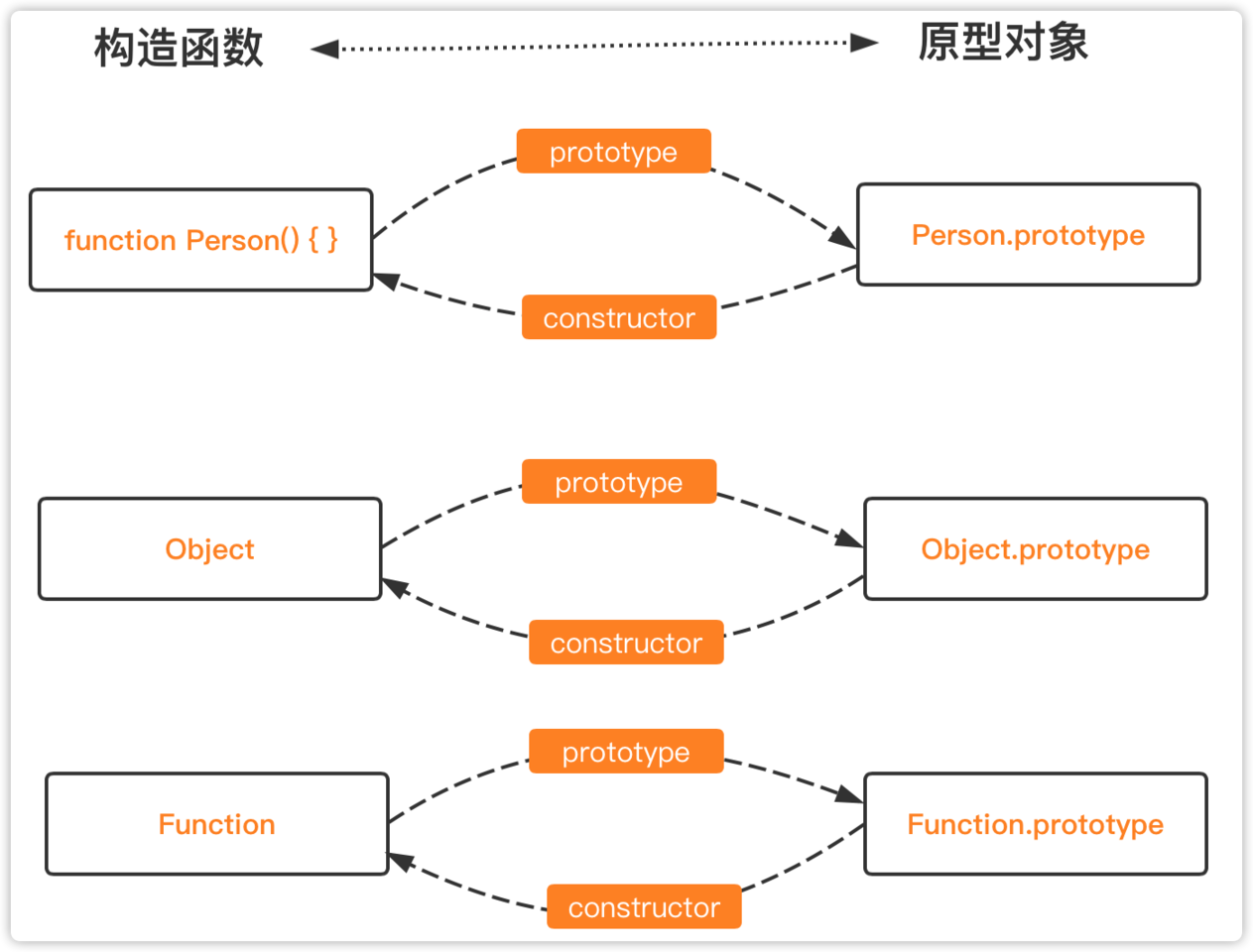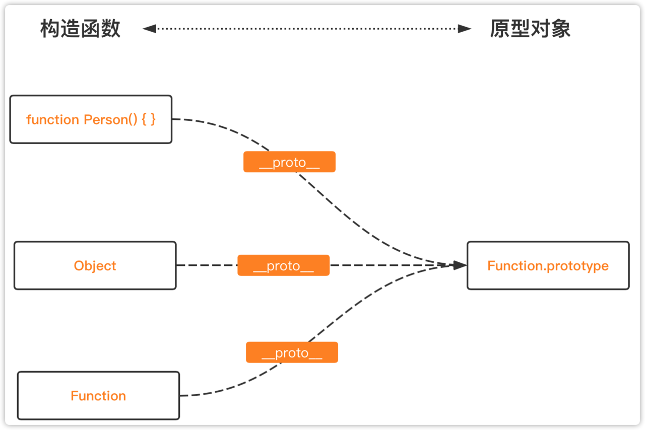 - 当你new一个构造函数的时候,创建一个函数实例,那么 『 函数实例.__ proto __ === 该构造函数.prototype 』