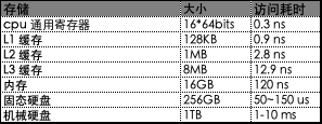 83_8.png  上图来自极客时间徐文浩的《深入浅出计算机组成原理》,我们以目前常见的普通家用电脑为例 ,分别说下上图各级存储的大小和访问速度,数据来源于 people.eecs.berkeley.edu/~rcs/resear…83_9.png  从最快的L1 Cache到最慢的HDD,其两者的访存时间差距达到了6个数量级,即便是和内存比较,也有几百倍的差距。举个例子,如果CPU在运算是直接从内存中读取指令和数据,执行一条指令0.3ns,然后从内存读下一条指令,等120ns,这样CPU 99%计算时间都会被浪费掉。但就是因为有局部性的存在,每一层都只有少部分数据会被频繁访问,我们可以把这部分数据从底层存储挪到高层存储,可以降低大部分的数据读取时间。