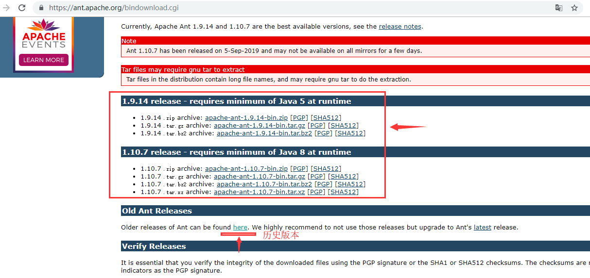 历史版本下载地址:https://archive.apache.org/dist/ant/binaries/
