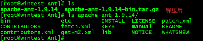 可以看到,本次解压到了目录 /root/SoftWare/Ant/apache-ant-1.9.14下。