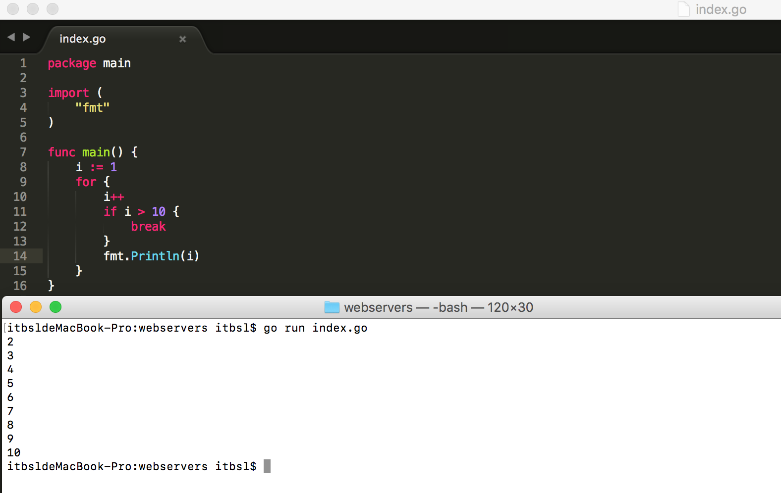 fmt.Println("哈哈")
