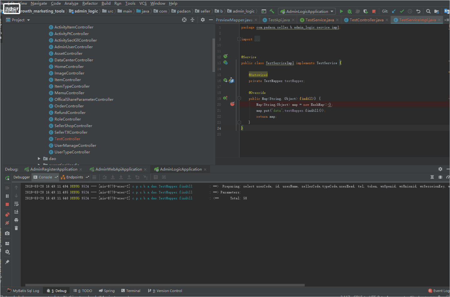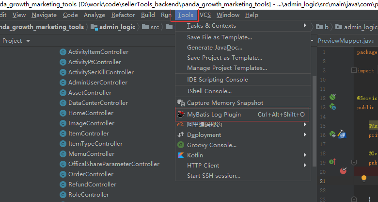 只要控制台有sql打印,我们的mybatis sql log 就会自动帮大家把sql和参数进行拼装 先把MyBatis Log Plugin找到并显示在控制台旁边