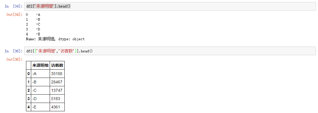 想要选取某一列怎么办?df[’列名’]即可: 选取多列呢?需要用列表来传递:df[[’第一列’,’第二列’,’第三列’..]]