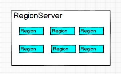 在宏观架构图的最后一个RegionServer中可以看到 ,它的内部是多个Region的集合: