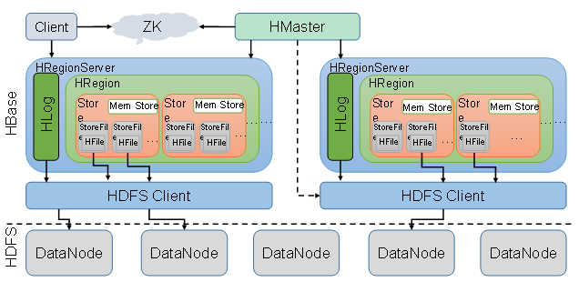 Client、Zookeeper、Master、HRegionServer、HDFS等几个组件组成,下面来介绍一下几个组件的相关功能: