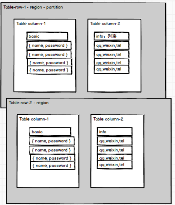 集合。之前提到过高表的概念,把高表进行水平切分,假设分成两部分,那么这就形成了两个Region。注意一下Region的几个特性:Region
