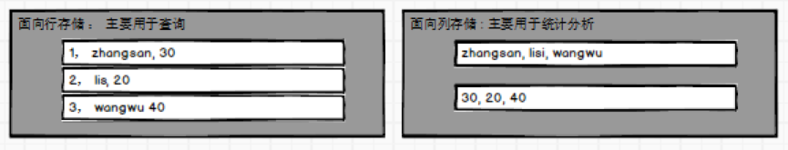 假如根据id=1查询出来这条数据对应的用户姓名,很简单,会给我们返回zhangsan。但是,当我们查的时候,想一下,查名字的时候age和email会不会被查出来?答案是肯定的,Mysql的数据存储是以行为单位的,面向行存储。那问题就出现了,我只需要找出zhangsan的名字,却需要查询一整行的数据,如果列非常多,那么查询效率可想而知了。