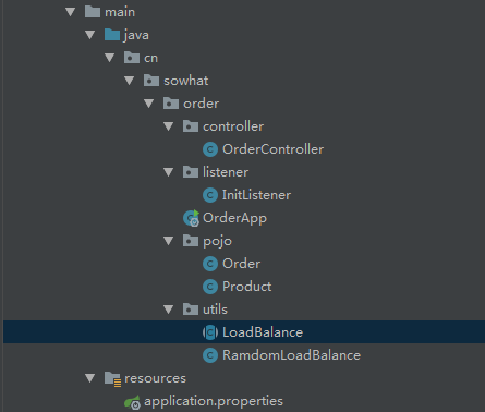 @Resource private RestTemplate restTemplate; private LoadBalance loadBalance = new RamdomLoadBalance(); @RequestMapping("/getOrder/{id}") public Object getOrder(@PathVariable("id") String id) { System.out.println("sowhat1412:" + loadBalance.choseServiceHost()); Product product = restTemplate.getForObject("http://" + loadBalance.choseServiceHost() + "/product/getProduct/1", Product.class); return new Order(id, "orderName", product); } }