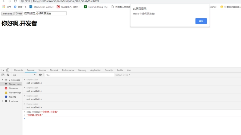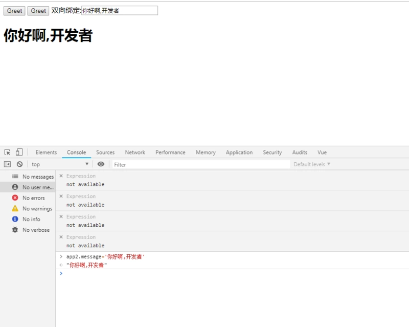 - {{data中的数据名}}: 原样输出(即使数据具备HTML标签的语义,message中数据是一个a标签)