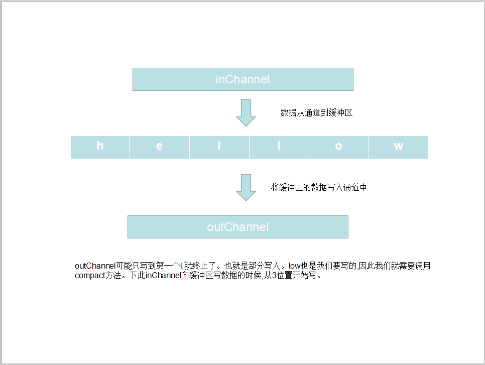 有人这里可能就会问了,上面你不是说position是下一个将要读或者写的元素的位置吗? 此时position不是还没值吗?那你为啥要复制呢? 因为Channel是非阻塞的,write()并不会将buffer中的数据全部写入。像下面这样: