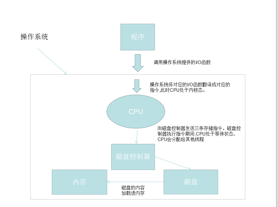 事实上这跟用流没多大的差距, 是的你用直接缓冲区和非直接都是一样的。都没差多少,那说好的高效呢。其实NIO的确很高效。这么用把他用低效了。 有关这种拷贝方式为什么这么慢, 我在《操作系统与通用计算机组成原理简论》 已经大致介绍过了,这里我们在复习一下,程序无法直接接触硬件,让程序直接接触硬件是系统不稳定的原因,程序如果想访问某个文件,那么只能调用对应的操作系统的函数。