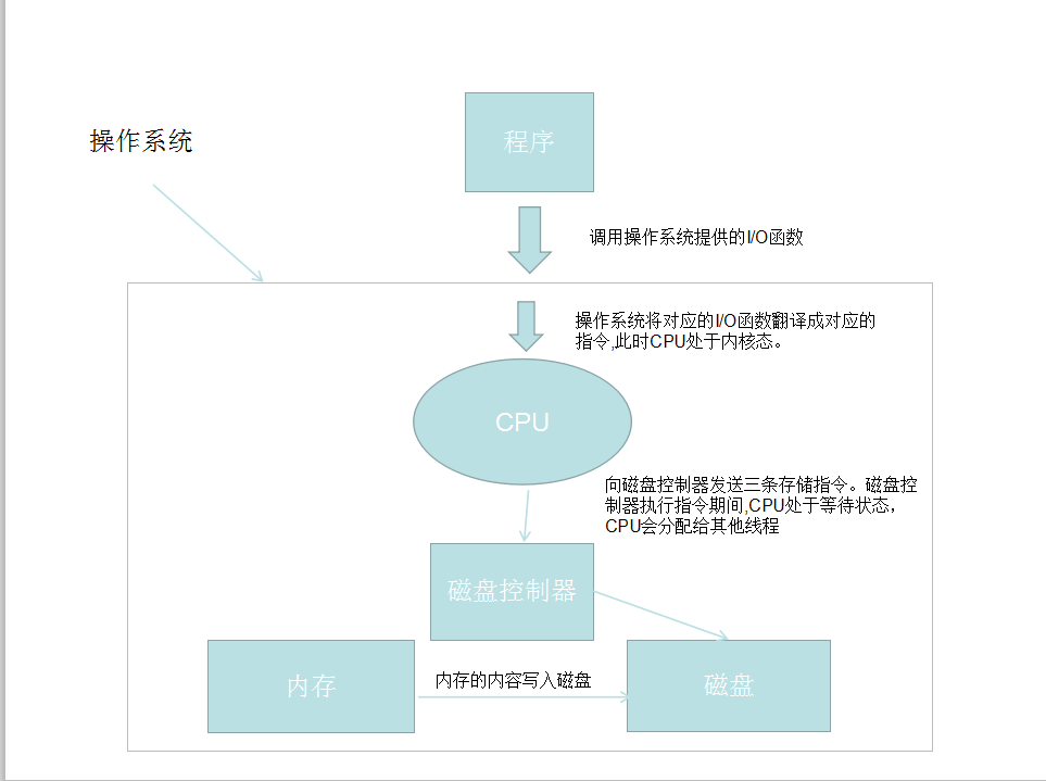 访问硬件属于特权指令,在执行指令的时候,CPU出于内核态,CPU使用一种称为内存映射I/O(memory-mapped I/O)的技术向I/O设备发射命令,假设磁盘控制器被映射到某个端口,随后,CPU可能通过执行三个对地址0xa0的存储指令,发起磁盘读: 第一条指令是发送一个命令字,告诉磁盘发起一个读,同时还发送了其他的参数,例如当读完成时,是否中断CPU(如果你不懂什么是中断的话,没关系,等着我)。第二条指令指明应该读的逻辑块号。第三条指令指明应该存储磁盘山区内容的主存地址。