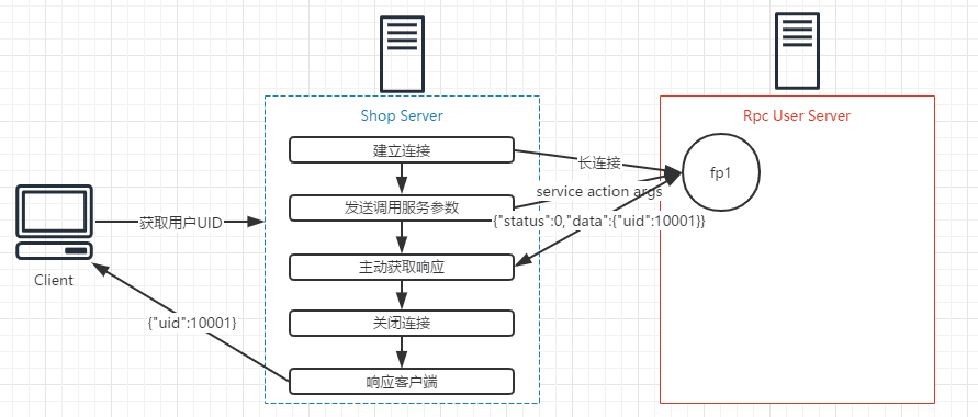1、 业务机接受请求 2. 业务机提取用户参数,请求用户服务,获取用户余额等信息,等待结果 3. 业务机提取商品参数,请求商品服务,获取商品剩余库存和价格等信息,等待结果。 4. 业务机融合用户服务、商品服务的返回结果,进行下一步调用(假设满足购买条件) 5. 业务机调用用户服务进行扣款,调用商品服务进行库存扣减,调用订单服务进行下单(事务逻辑和撤回可以用请求id保证,或者自己实现其他逻辑调度) 6. 业务机根据处理响应用户