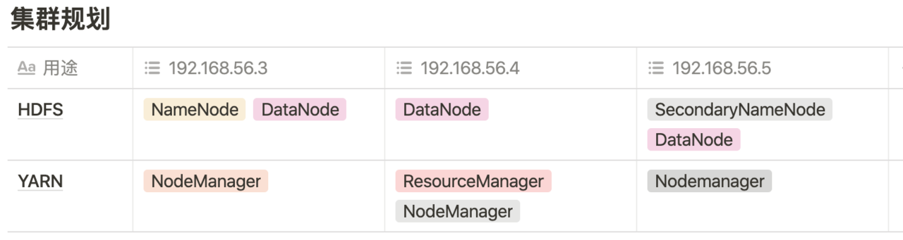 基础环境配置完成后,需要对集群中服务器做规划,让每台服务器承担不同的角色。