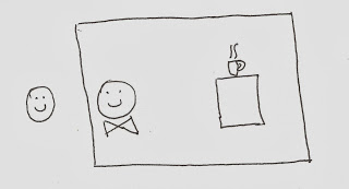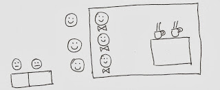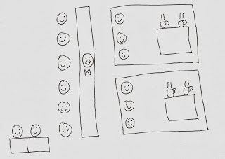 现在的开销: 200 平方英尺的区域,5 个服务员,4 台咖啡机,3 把椅子。