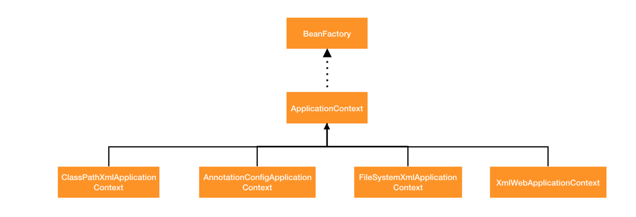 上面的每一个容器都可以直接使用,但是很少会直接使用 BeanFactory,一般都会使用 ApplicationContext 及其子类。ApplicationContext 及其子类提供了更多的服务,比如从配置文件中加载信息等等,可以构建不同类型的 Spring 应用。